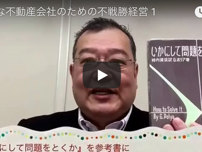 いかにして問題をとくか。小さな不動産会社は不戦勝経営が大切です。近隣の同業者や大手不動産会社…- 動画