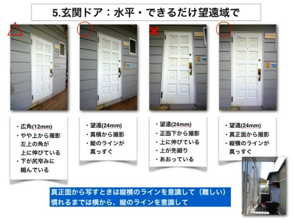 反響が増える物件写真の撮り方。今回は「玄関ドア、インターホンの撮り方」です。外部の写真で玄関ドアは意外にむずかしいです。望遠域で…- 不動産写真の撮り方