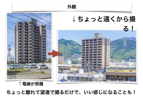 今回は外観写真の撮影実践です。物件の表紙に欠かせない外観写真は不動産会社のホームページの見せ所です。ちょっと工夫するだけで見る人…- 不動産写真の撮り方